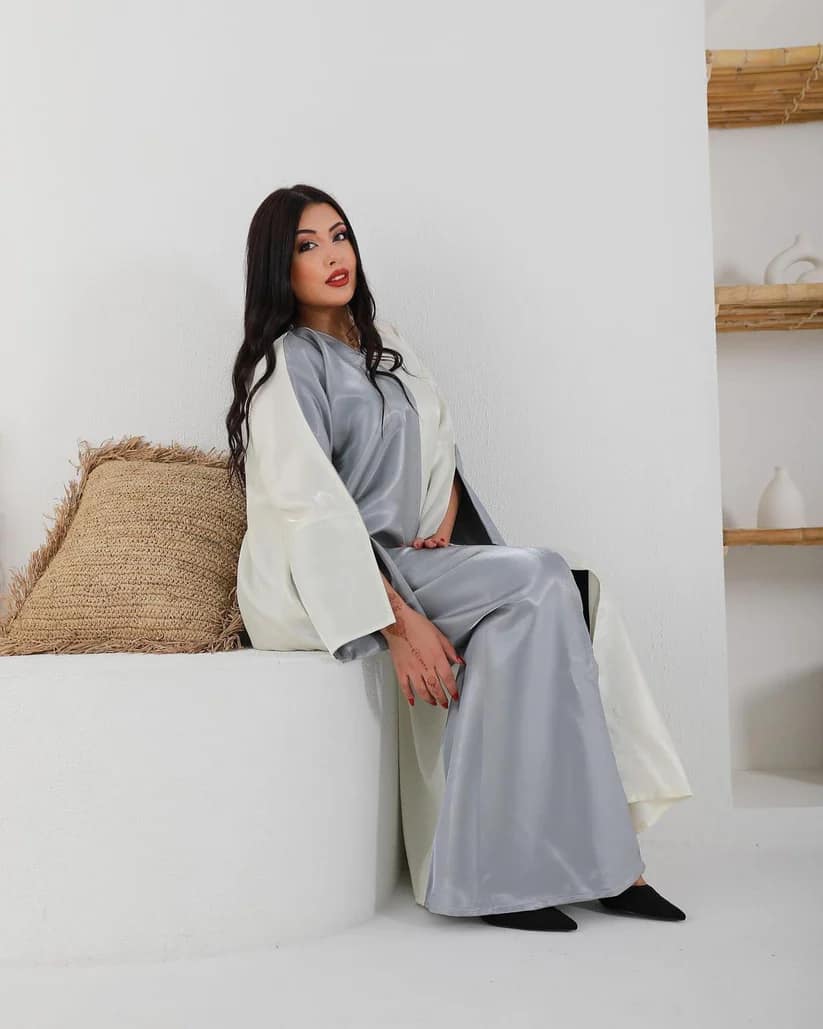 Grey Off-White Abaya